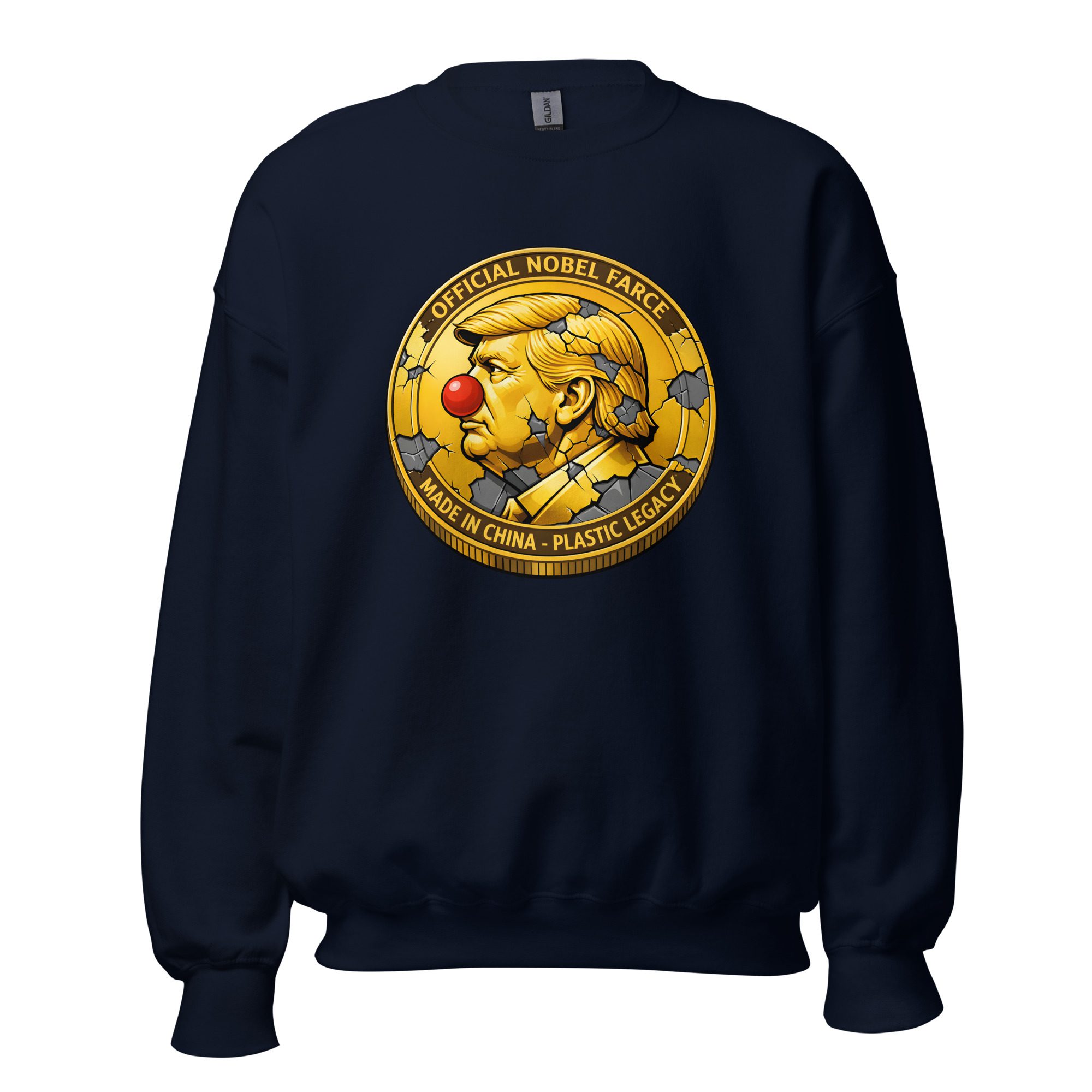 A trophy for the theater of our time. The Nobel Farce Medal celebrates the recognition the 47th President has always craved, delivered with the sharp sting of satire. This sturdy sweatshirt is built for those who see through the spectacle of the 2026 World Cup. It’s a high-quality piece that carries a heavy message: some “achievements” are just a cracked gold facade.