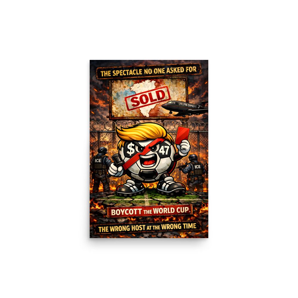 Printed on museum-quality paper, this poster serves as a permanent protest against a host nation that values walls over fans and profit over people. It’s the definitive piece for the critics, the activists, and the football purists who know that this is simply the wrong host at the absolute wrong time.
